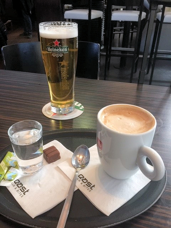 Om half zes gaat de Ipad op sirene en mogen we de sponde ontstijgen. Lekker op die gemakkie een bakkie en een körsie brood, dan onder de pompe en na het tweede bakkie op tournee. Het is uitzonderlijk rustig op de Aaa’s, zowel de 28 als de 1,9,2 zijn vrijwel verlaten. Ook de parkeerschuur van P3 heeft nog volop plek, net als de heen en weerbus. En het gaat maar door; inchecken is minutenwerk en na het verlaten van de bagage verlaten we zelf nog even het pand, waarbij we zien dat het op de rookplek al net zo rustig is als binnen in de vertrekhal 3. Dat gaat goed zo.
