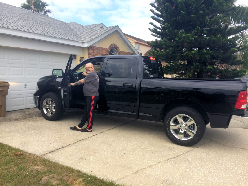 Als de botten weer soepel zijn en de konte weer skone, zoals we in Zwolle zeggen, is de automobiel aan de beurt voor een fotosessie. Geen Escalade, zoals gezegd, maar een megatruck, en ook nog een icoon, de Dodge Ram 1500. Altijd al een keer een pickup (of truck zoals ze hier zeggen) willen huren, maar op Orlando Airport staan ze zelden, en als ze er staan zijn het vaak Chevy Silverado’s, single of 1 ½ cab, maar op Tampa staan er plenty. We nemen de Classic Big Horn, Go Big or Go Home.