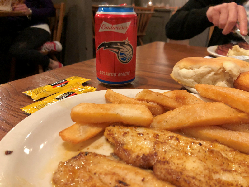We hadden ons voorgenomen om nooit meer een voedselfoto op het interweb te plaatsen, maar deze mijlpaal mag voor eeuwig bewaard blijven. Na de uitvinding van het (motor)wiel toch wel een ontwikkeling van onschatbare waarde; ZE VERKOPEN NU BIER BIJ DE CRACKER BARREL !!! En nog wat andere alcoholica die ik al weer vergeten ben. Oké, ik moest dan wel m’n ID laten zien, maar dat had ik er graag voor over. Eindelijk geen gulpen lemonade, fanta of cola meer, en geen Orange’nCream of Root Beer, maar gewoon BUDWEISER. It’s MAGIC ! Florida zal nooit meer hetzelfde zijn voor mij 😊