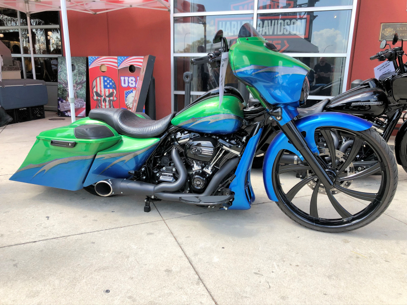 Maar er zijn ook positieve veranderingen, daarover later meer. Nu eerst maar eens naar Daytona, over de opvallend rustige tolweg 417, waar aan het eind, in DeBary ons favoriete bakje koffie wacht. Ook het vervolg op de Interstate 4 is opvallend rustig, en het doet ons deugd dat eindelijk de aansluiting op de Interstate 95 bij Daytona klaar is. Ook hier flitsen we doorheen en we zijn nog nooit zo snel bij Destination Daytona gekomen. Wat minder leuk is, is dat het hier ook rustig is. Onderweg zagen we ook al veel minder motoren dan andere jaren. Of dit nu Corona is, af die iets mindere temperaturen van het weekend, of bezuiniging dat mensen niet meer de hele Bike Week willen komen (iets wat al langer aan de gang is), blijft een raadsel. Maar gelukkig zijn er nog genoeg aparte motoren (of je/we ze mooi vindt is smaakgebonden) om op de gevoelige plaat vast te leggen.